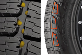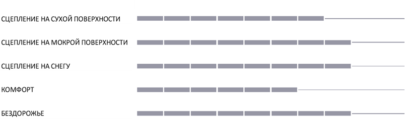 2. НЕРАВНОМЕРНО РАСПОЛОЖЕННЫЕ БЛОКИ ПРОТЕКТОРА С ОСТРЫМИ КРАЯМИ - сцепление на бездорожье (снег, мокрая трава и грязь)