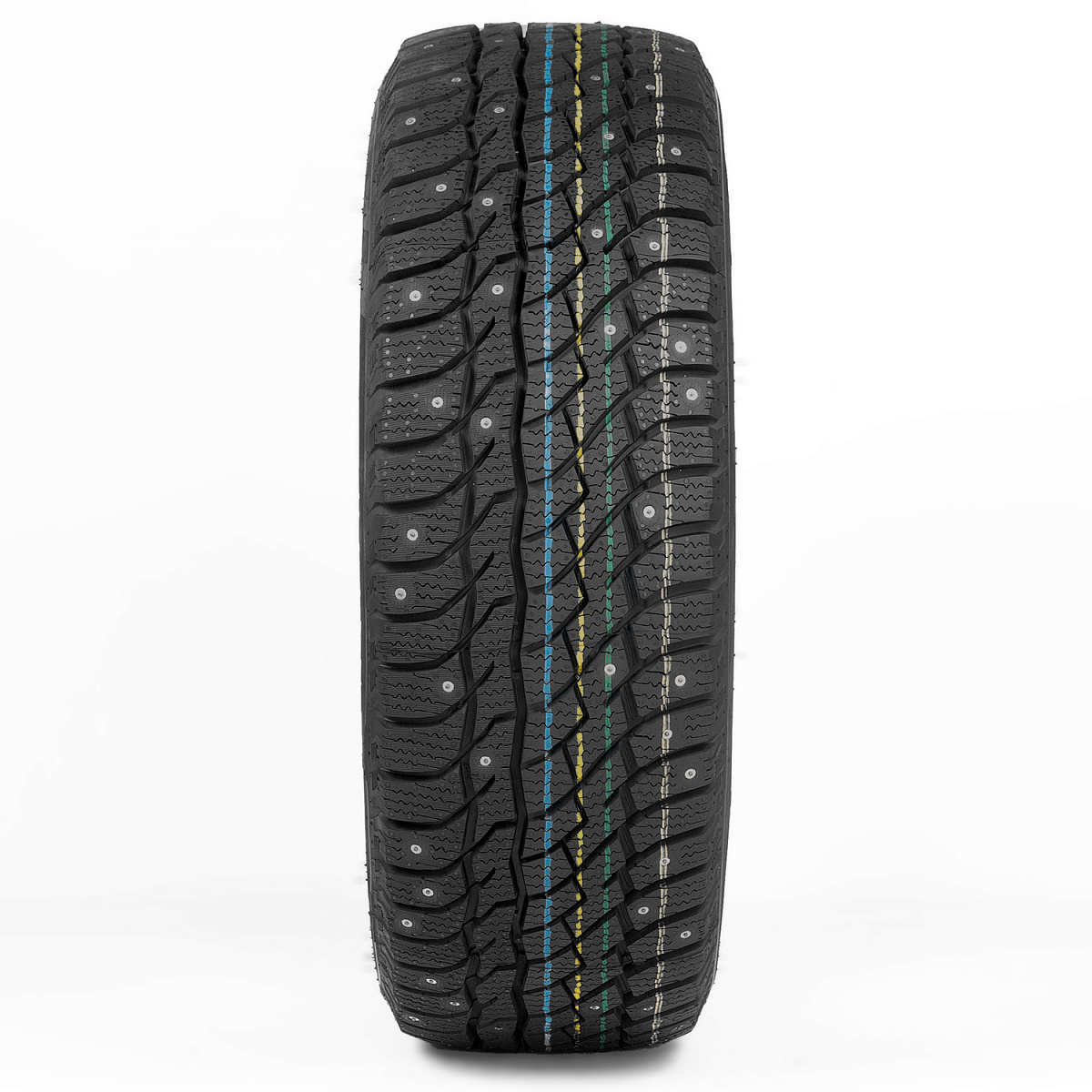 - Не симетричный рисунок протектора и широкое расположение шипов обеспечивает высокую износостойкость и заметно снижает шумообразование.